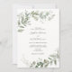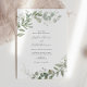 Invitación a la boda con un marco de eucalipto acuarela y vegetación. Personalizar con su información para los recién casados. Haga clic en "hacer clic para ver más personalizar" para cambiar el estilo, tamaño o color de la fuente.