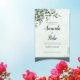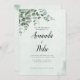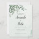 Una invitación a la boda, limpia y elegante, con una vegetación de eucaliptos acuáticos sobre un suave fondo sabroso. Perfecto para bodas minimalistas, ceremonias al aire libre, celebraciones ecológicas y modernos temas de boda botánico. Sencillo pero sofisticado para un día especial.