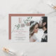 Celebra tu amor con esta invitación de boda fotográfica romántica y minimalista. Con un monograma personalizado en la parte superior, flores suaves de rosa polvorienta y follaje verde pastel, este diseño moderno bohemio equilibra la elegancia y la simplicidad. Una foto de tamaño completo de la pareja añade un toque personal y atemporal. Perfecta para bodas de tonos neutros, de primavera o pastel con un estilo suave y elegante. Personaliza fácilmente los nombres, detalles de la boda y la foto para hacerla tuya.