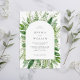 Invitación nupcial minimalista moderna con diseño sencillo, caligrafía elegante y diseño botánico de acuarela de color verde boho.