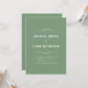 Esta invitación a la boda presenta un color verde sabio y una tipografía limpia y contemporánea. Su diseño minimalista garantiza claridad y elegancia, por lo que es idóneo para diversos temas bodas. Se puede personalizar con sus nombres, fecha de boda y detalles del lugar. Perfecto para las parejas que buscan una moda y una invitación refinada que marca el tono de su día especial.