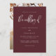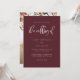 Tarjeta de plantilla minimalista moderna para la invitación a la boda con texto de guión boho. El color está en el fondo de merlot y los textos en blanco. Personalizar esta invitación añadiendo la información de su propio boda. Perfecto para cualquier boda de temporada. Puedes añadir tu foto de compromiso en la parte posterior.
