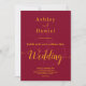 Esta elegante invitación a la boda de Borgoña y de oro es perfecta para un boda moderno. el diseño es sobrio y elegante, con una caligrafía dorada sobre un fondo burdeos.