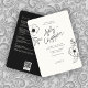 Invitación Boda mínimo floral-botánico negro todo en uno