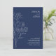 Invitación Boda Mínimo Navy Blue White Wildflowers