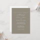 La elegancia se une al diseño atemporal con esta invitación a la boda mínima neutra clásica. Con un diseño depurado y sofisticado y suaves tonos neutros, esta invitación es perfecta para parejas modernas que aprecian la sencillez y el estilo. Ya sea que esté planeando una celebración de la ciudad de la moda, una ceremonia íntima en el jardín o una boda de destino, este versátil diseño encaja perfectamente en cualquier tema. Fácilmente personalizar con tus nombres y detalles del boda para crear una invitación que sea única tuya.