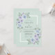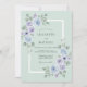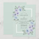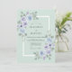 Un suave fondo verde menta proporciona una base serena para rosas de acuarela en tonos de lavanda y azul polvoriento. Hojas delicadas de eucalipto y follaje tonificado en plata añaden un toque exuberante y orgánico a la obra de arte. Esta estética romántica y etérea es perfectamente adecuada para un evento estacional de primavera o verano.