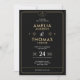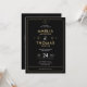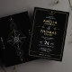 Invitación de Boda Negra y Dorada Moderna con Detalles Celestiales