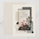 Establece un tono artístico y de alta costura para tu celebración con esta cautivadora invitación de boda moderna abstracta. El diseño es un collage magistral sobre un fondo beige claro y limpio que sirve como base neutral sofisticada. La estética central es Abstracta Minimalista, construida alrededor de múltiples formas geométricas superpuestas en materiales texturizados y contrastantes. La paleta presenta negro carbón profundo, gris polvoriento sutil, rosa suave y toques de bronce cálido y blanco. El área de texto central de color blanco está enmarcada por un borde negro nítido, superpuesto sobre bloques de gris y negro texturizados, y patrones dinámicos a rayas, lo que le da un fuerte sentimiento arquitectónico y moderno de mediados de siglo. Esta estructura rígida se suaviza hermosamente con elementos orgánicos: una rama prominente de bayas rojas rosadas vibrantes y hojas azules grises audaces que visualmente resaltan contra la geometría. Otros acentos incluyen círculos texturizados en rosa y blanco, y líneas finas de bronce, que agregan un rico detalle. Este diseño único es perfecto para parejas que planean una boda en la ciudad, una recepción en una galería, o cualquier evento que enfatice la elegancia estructurada, la textura audaz y la complejidad artística. Este diseño es perfecto para invitaciones de boda modernas, anuncios de fiesta de compromiso de arte abstracto, invitaciones sofisticadas a cóctel, o pap