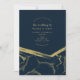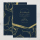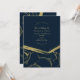 Invitación Boda moderna chic azul marino oscuro y mármol dora