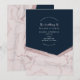 Invitación Boda moderna chic de mármol rosa y azul oscuro