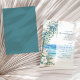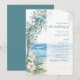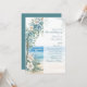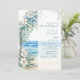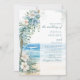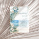 Establece el tono para una celebración costera chic y elegante con nuestra Invitación de Boda con Arco Floral y Playa Tropical Moderna. Este diseño fresco y contemporáneo presenta una impresionante representación en acuarela de una vista al océano tropical, enmarcada por un exuberante arco floral. Con solo la mitad del arco visible en el fondo, la composición asimétrica crea una estética moderna y audaz. Delicadas flores azules y blancas con hojas verdes suaves realzan la elegancia bohemia de esta invitación, mientras que el texto está bellamente dispuesto en el lado derecho para un look elegante y juvenil.