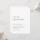 Esta invitación de boda presenta un hermoso equilibrio entre la escritura a mano y la tipografía minimalista, creando un aspecto moderno y atemporal. Su diseño limpio y neutral hace que sea fácil de combinar con cualquier tema o paleta de colores de boda. Ideal para bodas formales, informales o de destino, esta invitación aporta un ambiente refinado pero relajado. Puedes actualizar el texto para incluir los detalles de tu boda y nombres, y combinarlo con tarjetas de RSVP y detalles coincidentes. Es una forma elegante y sencilla de marcar el tono para tu celebración.