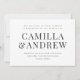 Una invitación moderna a la boda en blanco y negro elegante. Simple y elegante tipo en el frente con foto en la parte posterior. Haga clic en editar para personalizar de este diseño.