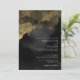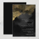 Imagina una invitación de boda que encarne la elegancia y el estilo minimalista modernos. El fondo es un negro profundo y elegante, creando una base audaz para el diseño. Un patrón dorado y elegante se extiende sobre él, elaborado con trazos fluidos y orgánicos de acuarela o tinta al alcohol, que evocan las líneas hipnóticas de las formaciones de ágata o geodas. El texto presenta una mezcla de fuentes clásicas serif y modernas en blanco crujiente, añadiendo un ambiente fresco y contemporáneo. El resultado es un look simple y chic, perfecto para una celebración minimalista y elegante.