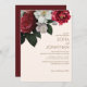 Esta invitación floral acuarela presenta flores de rosa,peonías de color marrón rústico,magenta,marfil y rojo con un patrón de hojas botánicas y un texto mínimo. Personalice la invitación con el nombre del destinatario. Colección de bodas florales clásicos y formales