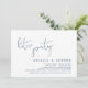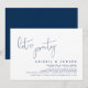 Esta es la tarjeta de invitación de la fiesta de boda fuga, con diseño de letra azul marino minimalista (Vamos a la fiesta).