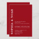 Esta invitación presenta un fondo rojo moda con un diseño minimalista. Los nombres de la pareja se destacan en una tipografía audaz y elegante, añadiendo un toque de elegancia moderna a la invitación.