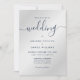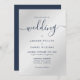 Elegantes invitaciones de boda azul marino y plateado con un moderno tipo de letra de guión. Elementos coincidentes disponibles.