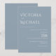 Se utilizaron hermosos tipos de letra con un elegante y audaz fondo azul pálido para crear esta encantadora invitación de boda moderna. Una invitación perfecta para cualquier boda de temporada. 100% de satisfacción del cliente con Zazzle cada día.