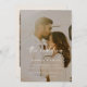 Invitación a la boda de 2 fotos con escritura beige moderna. Personalizar con dos de tus fotos favoritas de compromiso o fotos generales de pareja en la parte delantera y trasera, y agrega información futura de bodas para los invitados, incluido un sitio web boda en la parte posterior para más detalles.