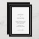 Invitación nupcial moderna con un diseño sencillo pero elegante con tus detalles en el interior de un doble borde. El tema de color es blanco y negro y puede cambiarse en la herramienta de edición de diseño.
