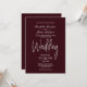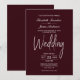 Una elegante invitación minimalista a la boda borgoñona con texto blanco.
