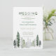 Bosque de pinos en un entorno montañoso que hace que los paisajes de un boda inviten a la naturaleza a formar parte del lugar. La elegancia sencilla y los elementos rústicos de montaña se combinan en una mezcla de verdes. Las fuentes modernas y de aspecto mínimo coinciden con la majestuosidad de los pinos altos. Una acuarela moderna con un ambiente de invierno. Vuelve a un gris plateado. Texto personalizado. Gabinete coincidente: https://www.zazzle.com/mountain_forest_modern_rsvp_enclosure_card-256239076142475873