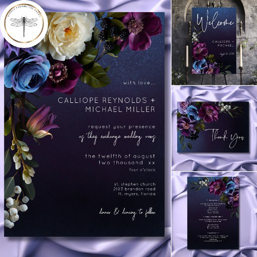 Dark Moody Blue & Lavender Floral Modern WeddingDiseñado por Kathe Santillo