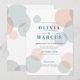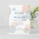 INVITACIÓN DE BODA | Los grandes y modernos puntos de confeti translúcidos en tonos pastel del sudoeste: coral de arena, cactus verdes y azul mudo. Los detalles de su boda escritos en un divertido y audaz tipo de letra contemporánea emparejado con un tipo de letra sans serif simple con encabezados caligráficos. Perfecto para bodas de verano, bodas en la playa o bodas de destino. Personalízalo para tus necesidades. Forma parte de una suite de papel boda. Creado por BarefootBride™