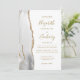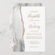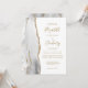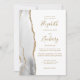 La arista izquierda de esta elegante y moderna invitación a la boda se caracteriza por una pasarela de acuarela gris y blanca recortada con un falso purpurina de oro. El texto del personalizable combina la escritura a mano de color dorado, las fuentes de copperplate y cursiva en un fondo blanco. El reverso presenta un diseño de agate que coincide.