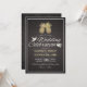 Plantilla de Invitación a la Boda Moderna - Elegante Pareja de Piña de Relieve metalizado dorado Faux sobre fondo de lino de damasco floral negro. Un diseño perfecto para tu gran día. ¡Todo el estilo de texto, colores, tamaños se pueden modificar para adaptarlo a sus necesidades!