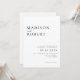 Simple invitación a la boda con moderno diseño de tipografía minimalista en color blanco y negro. Fácilmente personalizable con toda su información para invitaciones de boda personalizadas,