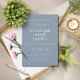 Bello blanco sobre un azul polvoriento hecho en un estilo clásico y elegante usando una tipografía fina. Moderno y sencillo. Perfecto para su evento especial.
