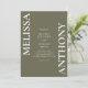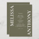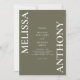 Invitación a la Boda Verde de Oliva Minimalista Moderna. Presenta tipografía audaz y diseño gráfico mínimo. Personalice el texto con todos los detalles de su día especial.