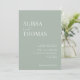 Invitación nupcial moderna con diseño de tipografía minimalista en color verde sabio. Fácilmente personalizable con toda su información para invitaciones de boda personalizadas,