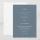Bonito y mínima invitación a la boda azul polvorienta con una simple espalda blanca de la tarjeta. Esta elegante invitación es una forma de moda para que los huéspedes sepan de su próxima celebración boda, y cuenta con caligrafía moderna.
