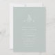 Presentamos la invitación nupcial perfecta para la pareja moderna que aprecia la simplicidad y la elegancia - nuestra sabia invitación verde con un minimalista diseño de monograma de la hoja de arte de línea. Esta invitación presenta un impresionante color verde azulado plateado claro con una fuente blanca y nítida. El dibujo minimalista de la hoja le aporta un toque de belleza natural y sofisticación al conjunto. Ideal para una variedad de temas y estilos bodas, esta invitación le dará un tono especial a su día especial e impresionará a sus invitados desde el momento en que lo reciban.