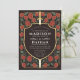 Invite a sus huéspedes bodas con este Monograma Royal Sword & Shield medieval Fantasy. Este diseño es perfecto para las parejas que buscan una auténtica fantasía medieval moderna. Personalice el texto, la fuente y los colores para que se ajusten a sus preferencias de diseño. Artículos coincidentes en nuestra tienda para un tema fiesta completo. El diseño no es un verdadero Relieve metalizado.