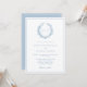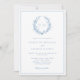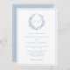 Elegante e intemporal, esta minimalista invitación a la boda presenta un suave monograma azul polvoriento enmarcado por una delicada corona botánica, perfecto para parejas que buscan un diseño refinado y romántico. La tipografía clásica de la sierra y los sutiles acentos azules le le dan un toque de sofisticación a su gran día. Fije el tono de su día especial con esta elegante invitación que combina simplicidad moderna con encanto clásico.