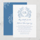 Invitación Boda Monograma del Escudo Floral Azul Vintage