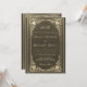 Esta elegante invitación a la boda con un aire vintage, recomendada para un boda más formal, "corbata negra", tiene un marco dorado vintage con elegantes decoraciones barrocas de oro sobre un fondo de cuero negro. El monograma anterior, los nombres de la novia y del novio y la última frase están escritos en un elegante guión caligráfico. Se da el debido crédito a los padres de la novia y al novio en la frase "junto con sus familias" que precede a sus nombres. Todo el texto puede ser personalizado y tiene un color dorado similar al marco dorado vintage. El fondo con sus elegantes decoraciones de oro barroco en la unión es de un encuadernador de libros francés vintage, de Georges Mercier (1885-1939) - Madame de Maupin de Teophile Gautier, volumen 1, edición 1911, París - ahora de dominio público, de la Biblioteca Pública de Nueva York