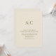 Elegante y moderna invitación a la boda minimalista con un monograma sobredimensionado. El diseño está despojado de ornamentación superflua, dando prioridad a la funcionalidad, el equilibrio y la armonía. Perfecto para las parejas que adoptan la máxima sencillez y estilo. Detalles del texto en tipografía minimalista mixta. ❀ ❀ ❀ Por favor, contacte para obtener ayuda en la personalización o adaptación a sus deseos individuales. O bien, para ayudar a crear productos relacionados o formas de color personalizado para crear su suite de papel boda perfecta.