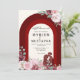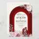 Esta invitación de boda musulmana bellamente diseñada presenta un arco rojo profundo acentuado con delicados patrones florales, combinando elementos tradicionales con elegancia moderna. Al destacar los nombres de la pareja, la invitación refleja calidez y sofisticación, perfecta para una celebración alegre.
