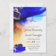 Impresionante invitación a bodas con un translúcido arte de tinta de alcohol. Esta invitación a la boda está decorada con ricos colores de tinta índigo, azul, violeta, violeta, naranja, melocotón y oro. Edite fácilmente la plantilla con los detalles del boda deseado. Arte original de la artista internacional Pauline Benjes. Vea nuestras colecciones para ver más de sus hermosos resúmenes sobre invitaciones a bodas, decoración en casa y más. Boda Naranja de oro azul moderno.