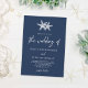 Esta moderna y mínima invitación a la boda marinera azul marino es perfecta para bodas con temática costera, y tiene dos estrellas de mar en la parte superior, y a la moda caligrafía de escritura a mano.
