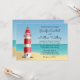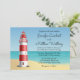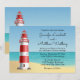 Establezca el tono divertido de su boda con esta linda invitación de escena de playa con faro rojo y blanco. La invitación de boda con tema de océano es perfecta para su boda de verano, marinero, náutica, destino o playa. Por favor, desplácese hacia abajo para ver los productos coincidentes que pueda necesitar.