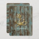 Invitación boda náutica de madera de muelle azul ancla de pla