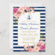 Invitación Boda Náutico Bandas Azules Foto Floral Rosa