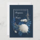 Anuncie su día especial con sofisticación atemporal usando esta invitación a la boda de la Marina y el Marfil. Con un fondo marino profundo y un marco blanco minimalista, este elegante diseño está decorado con flores de marfil exuberantes y un follaje azul estratificado que le confieren un toque refinado e inspirado en la naturaleza. Los crisantemos blancos y las peonías blandas proporcionan un hermoso contraste contra el fondo de la luna, creando una sensación de profundidad y elegancia. Perfecto para bodas nocturnos, celebraciones de invierno o sofisticadas ceremonias de jardín, esta invitación combina a la perfección con temas clásicos y contemporáneos. Su diseño nítido ofrece un amplio espacio para el texto personalizado, por lo que es ideal para invitaciones bodas, cenas de ensayo o duchas de novias formales. Personalizable a través de Zazzle, puede agregar fácilmente sus nombres, fecha y detalles del evento para hacerlo único suyo. Póngalo en pareja con tarjetas RSVP, notas de agradecimiento o plantillas de menú para crear una suite de papel coherente que impresiona a sus invitados desde el primer momento.